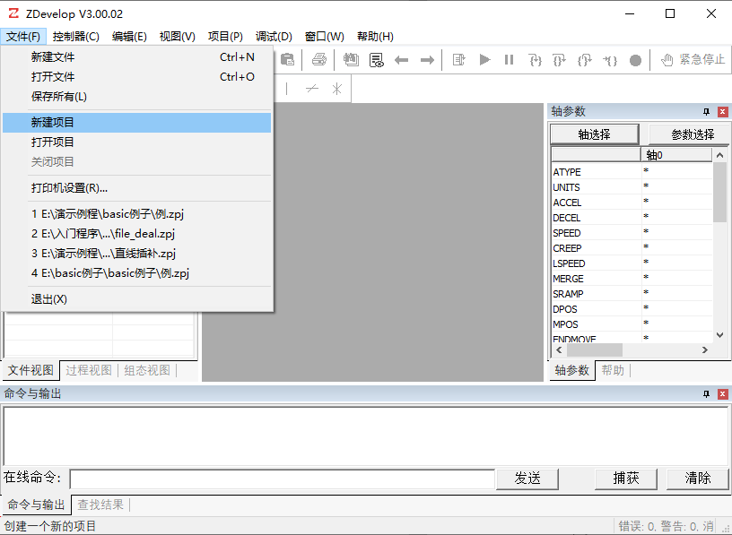 首先,在电脑里新建一个文件夹用来保存即将要建立的工程。打开ZDevelop编程软件,当前说明例程的ZDevelop软件版本为V3.00.02,更新软件版本请前往正运动官方网站下载。