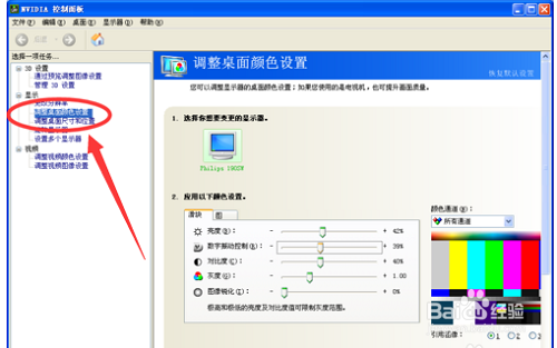 4/5在出来的这个窗口中找到显示一栏下面的”调整桌面颜色设置“,现在就可以在下方进行亮度调节了。