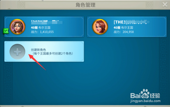5/7点击“创建新角色”,每个王国最多可创建2个角色哦。