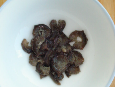 7、煮好的海参切薄片。