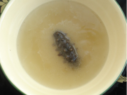 2、将海参放入高汤,小火煮10分钟。