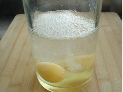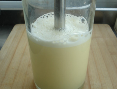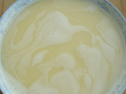 5、倒入盘中,用勺子撇去表面的泡沫。