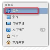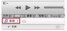 2.点击iTunes左上角按钮,该按钮是【音乐】、【影片】、【铃声】等分类切换处。