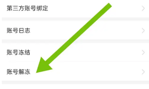 4、在安全中心里可以找回密码、解封账号,点击解冻账号。