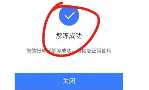 6、验证后系统会提示已经解冻,微信账号可以正常登陆。