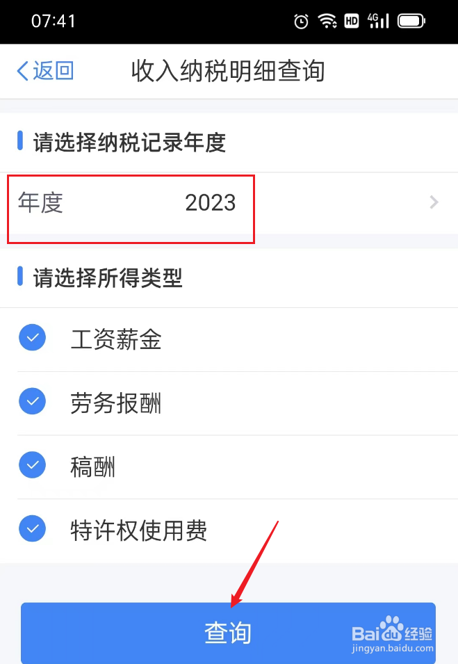 3/3在页面中,选择【查询年度】,点击【查询】即可。