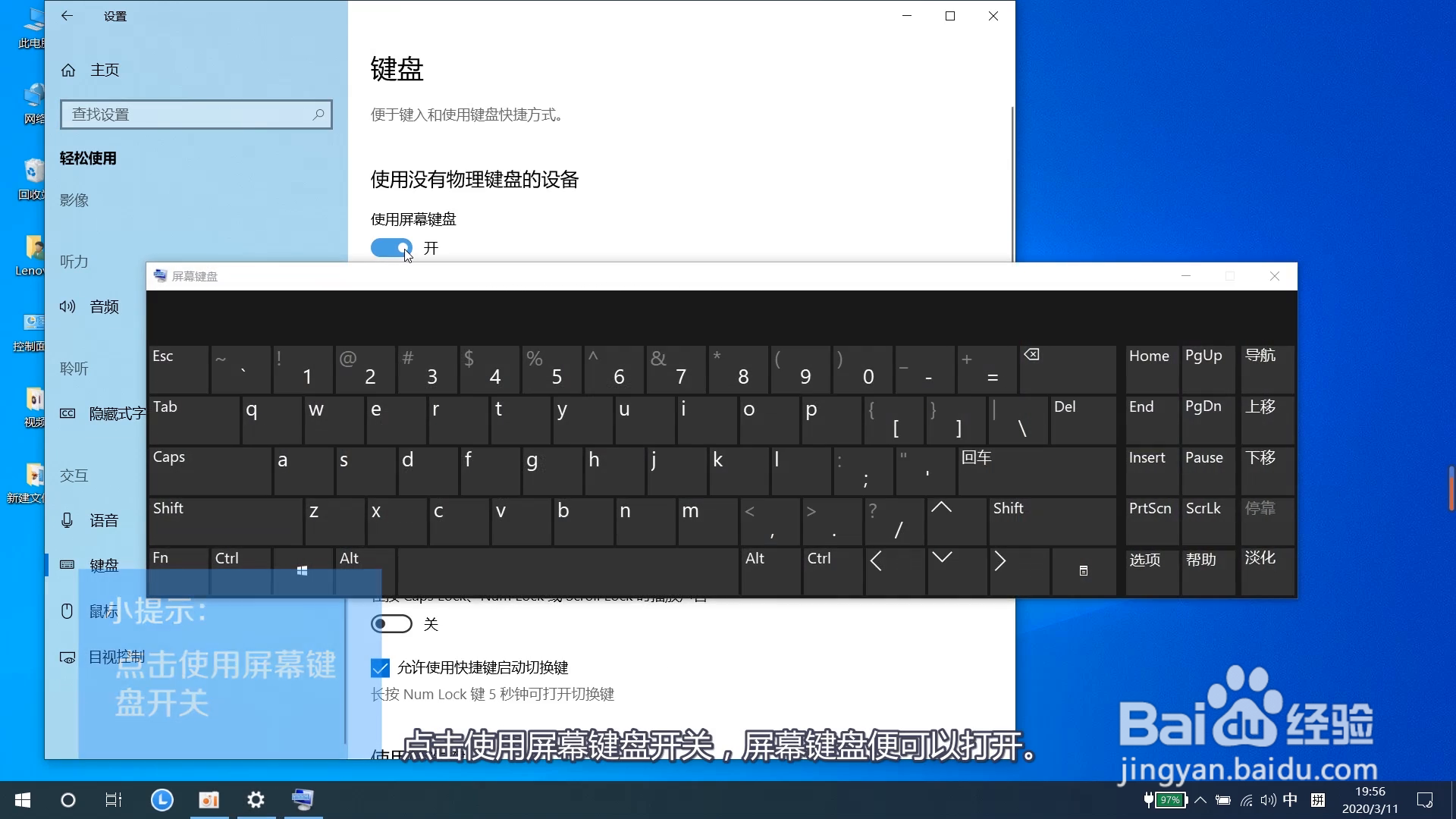 5/6点击使用屏幕键盘开关,屏幕键盘便可以打开。