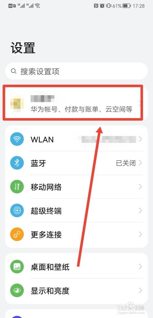打开手机设置,点击华为账号