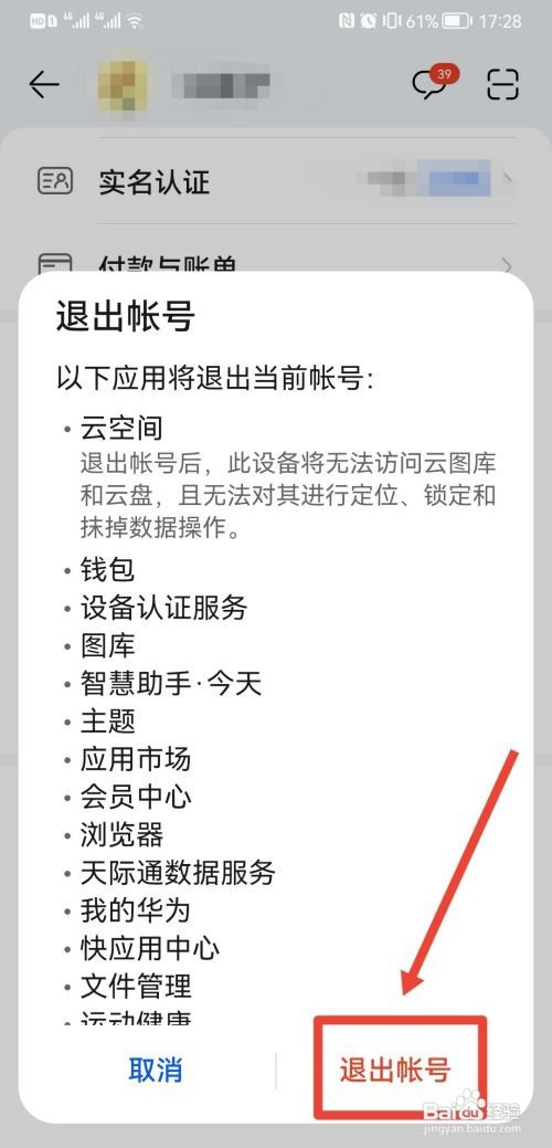 弹出界面,点击退出账号