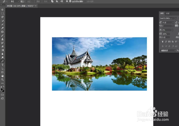 3/7我们找到对应的素材,这里我找了一个风景的素材,然后拉到这个画布里面。