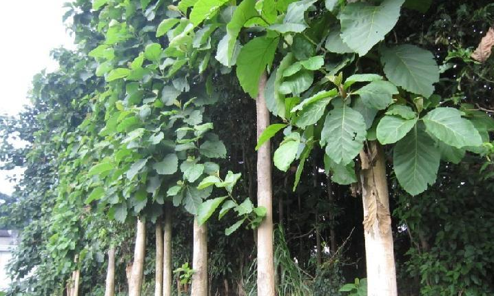 柚木(学名:Tectona grandisL.F.),又称胭脂树、紫柚木、血树等, 是一种落叶或半落叶大乔木,树高达40-50米,胸径2-2.5米,干通直。树皮褐色或灰色,枝四棱形,被星状毛。叶对生,极大,卵形或椭圆形,背面密被灰黄色星状毛。