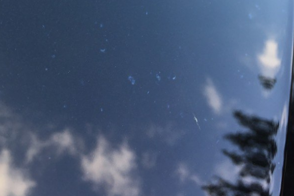 用洗车泥慢慢弄久一点就可以去掉,但唯独对这个小白点洗车泥一点用都没有,用洗车泥不停地擦小白点,事后还留下了许多暗纹,此时更怕用划痕蜡,用过划痕蜡后会留下一块雾状,白金蜡后盖不过去。