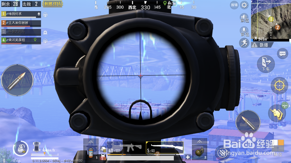 6/8这时候开镜,不要开倍镜,用红点或者全息,打中近距离的最好,远距离的,除非载具是静止的,否则直接放弃,或者突近了再打最好。