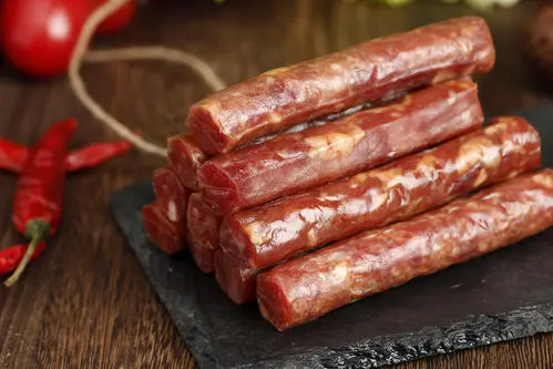 4、灌后可晾两三天再蒸,晾的时间不是绝对的,要根据制作时的天气温度来决定晾的时间长短。蒸前在肠体上用牙签扎眼,蒸20分钟,牛肉要延长蒸的时间,蒸好后即可食用,需再挂晾继续风干,才会有变得稍硬,吃起来更有嚼劲。