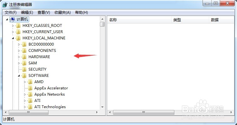 3/6输入regedit,点击【确定】按钮,弹出【注册表编辑器】窗口,如图