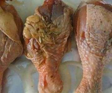 准备材料:鸡腿 3个、小茴香 少许、生抽 少许、洋葱 少许、盐 少许、料酒 少许。