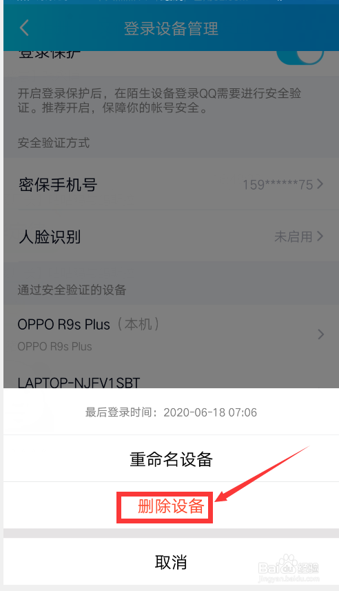 ④选择删除已有的登录设备