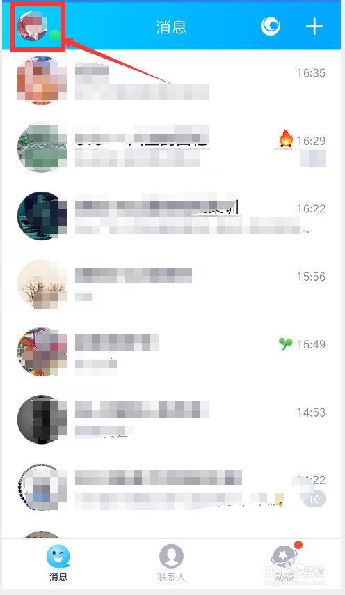 首先,我们打开手机QQ软件,点击左上角头像