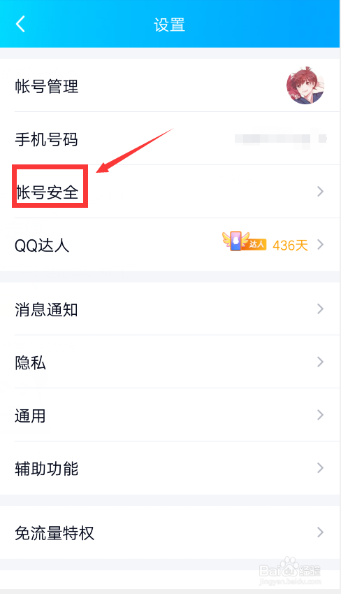 3/5对应的,在设置里面找到”账户安全“并点击进入