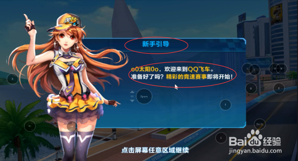 9/9加载完成后,正式进入到游戏,首先映入眼帘的就是“新手教程”,到此,QQ飞车手游的注册与登录就完全实现了,接下来的就是跟着新手教程开始飞车游戏啦。