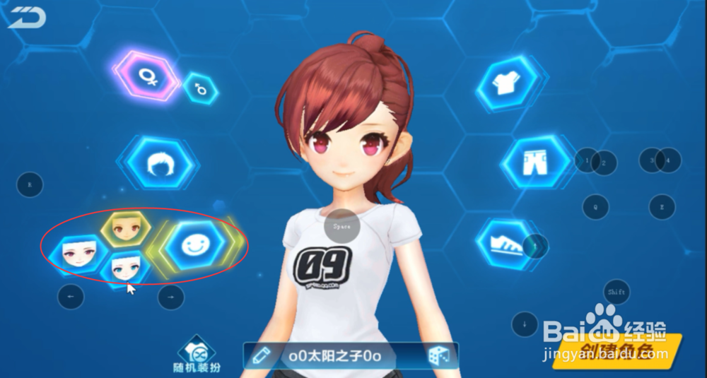 7/9接下来,进行人物“性别”、“头饰”、“脸和眼睛”、“上衣”、“裤子”、“鞋”,这些身上衣物的修改。