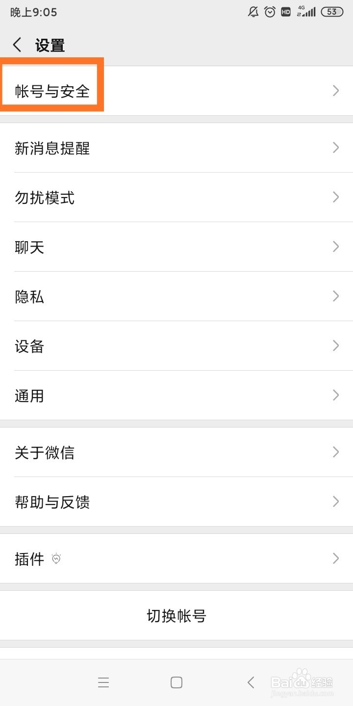 4/6进入设置之后,我们在点一下账号与安全,如图。