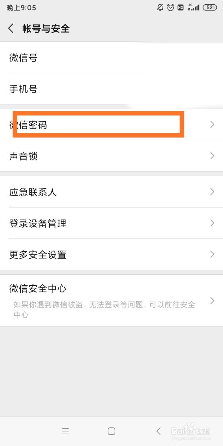 5/6进入账号之后,我们选择微信密码,如图所示。