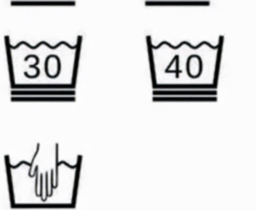 如果被划掉了,或者有个大X,则表示衣服不能水洗,可能需要干洗。水盆里的数字表示水洗温度,洗涤物品的最高水温(摄氏度)。如果水盆下没有横线,则表示可以按照洗衣机的正常循环进行洗涤。如果水盆下面有一条线,表示要温和洗涤,两条横线则表示要非常温和洗涤。如果水盆里有只手,那么则意味着衣物需要手洗而不能机洗。