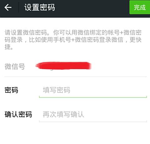 通过上述步骤登录微信后,需要重新设置登录密码。按照页面提示连续输入两次再点击“完成”就可以重新登录微信。建议大家都设置一些常用的密码,方便记忆。