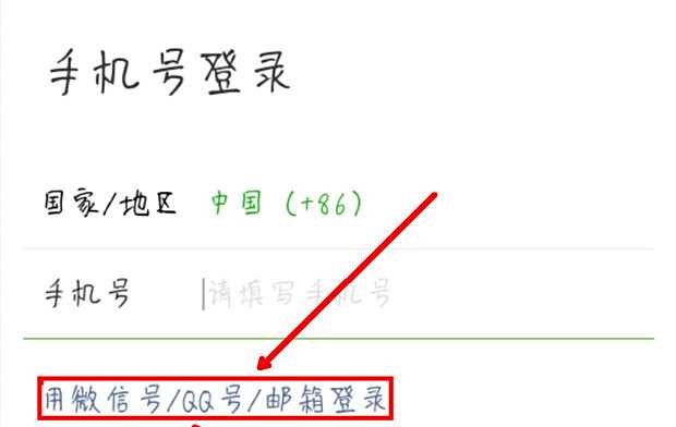 首先要看你的微信是用QQ号注册的还是手机号注册的,如果是QQ号注册,点击登录界面的“用微信号/QQ号/邮箱登录”。
