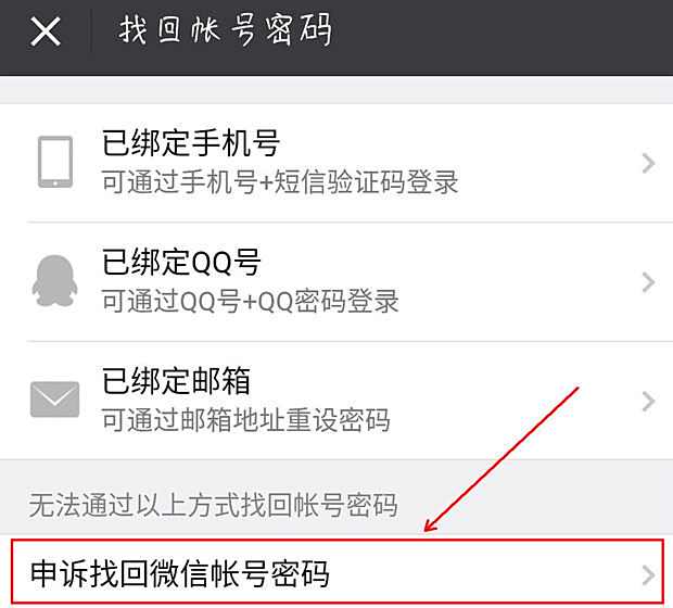 进入后点击“申诉找回微信账号密码”,然后按照手机提示操作即可。