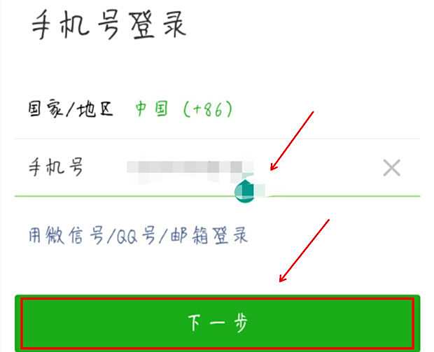 如果是用手机号注册的,在登录界面输入手机号,点击下一步。