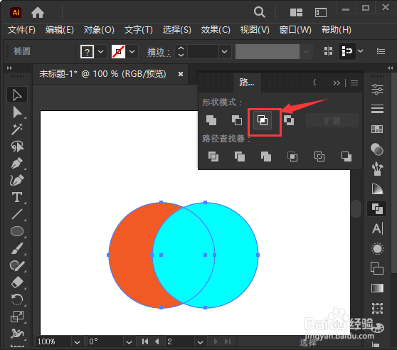 2/3在路径查找器的形状模式里面,点击【交集】。