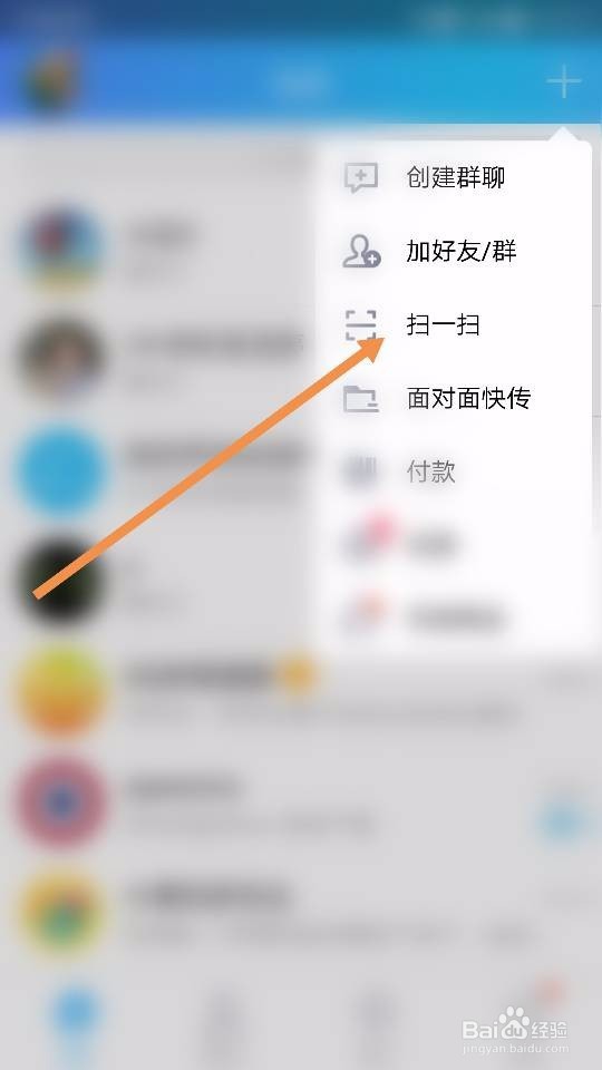 手机qq1/2手机qq扫描出来的二维码也可以进行移动支付,添加新的qq好友,入群等功能。简单了解后,我们打开手机qq,点击qq首页的右上角的【+】号选项,然后找到【扫一扫】这个功能,如图所示~