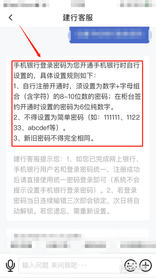 询问客服并查看下图,即可得知建设银行登录密码设置规则。