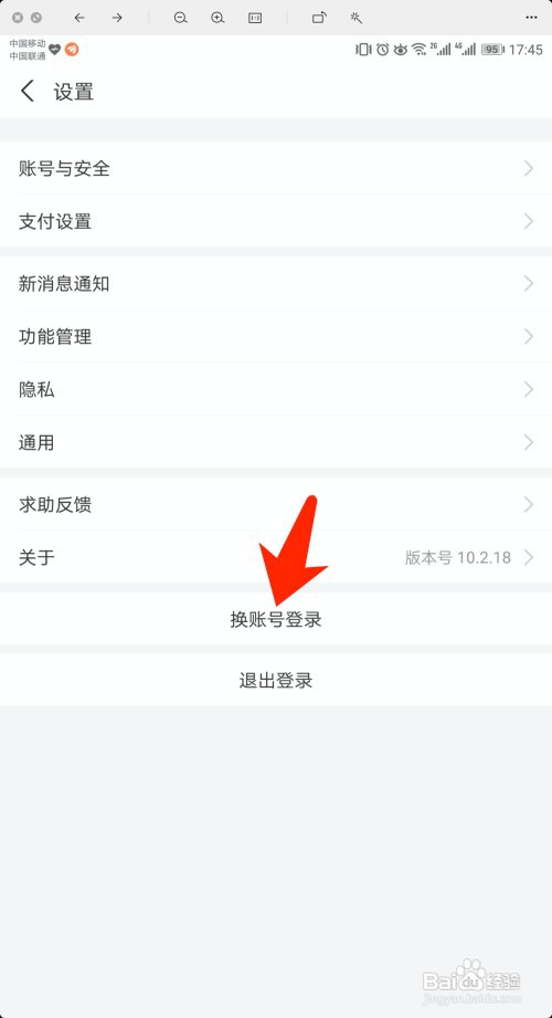 4/5在【设置】中,点击【换账号登陆】按钮。