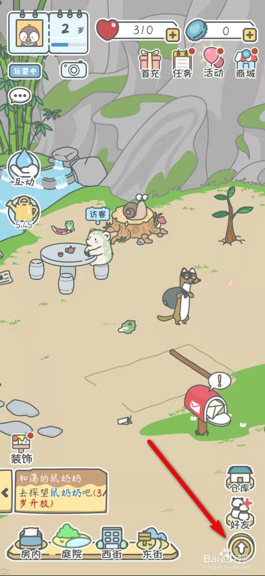 在宠我一生手游,点击右下角向上的小箭头图标。