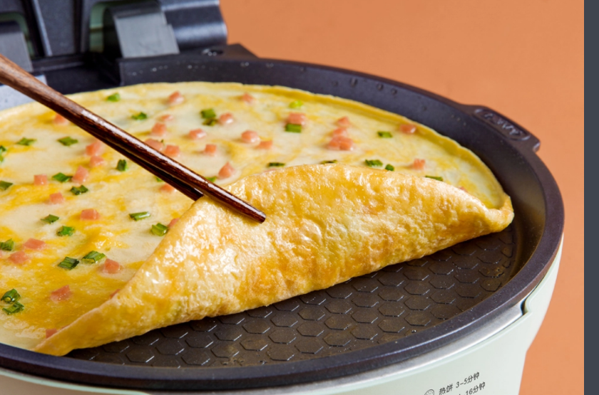 电饼铛也叫烤饼机,可以灵活进行烤、烙、煎等烹饪方法,有家用小款型和店面使用大款两种。