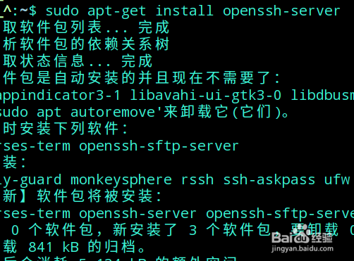 2/8然后,在终端中,输入sudo apt-get install openssh-server--回车--输入y--