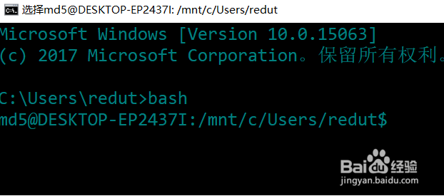 7/8打开命令提示符后,输入bash,打开win10的linux子系统。