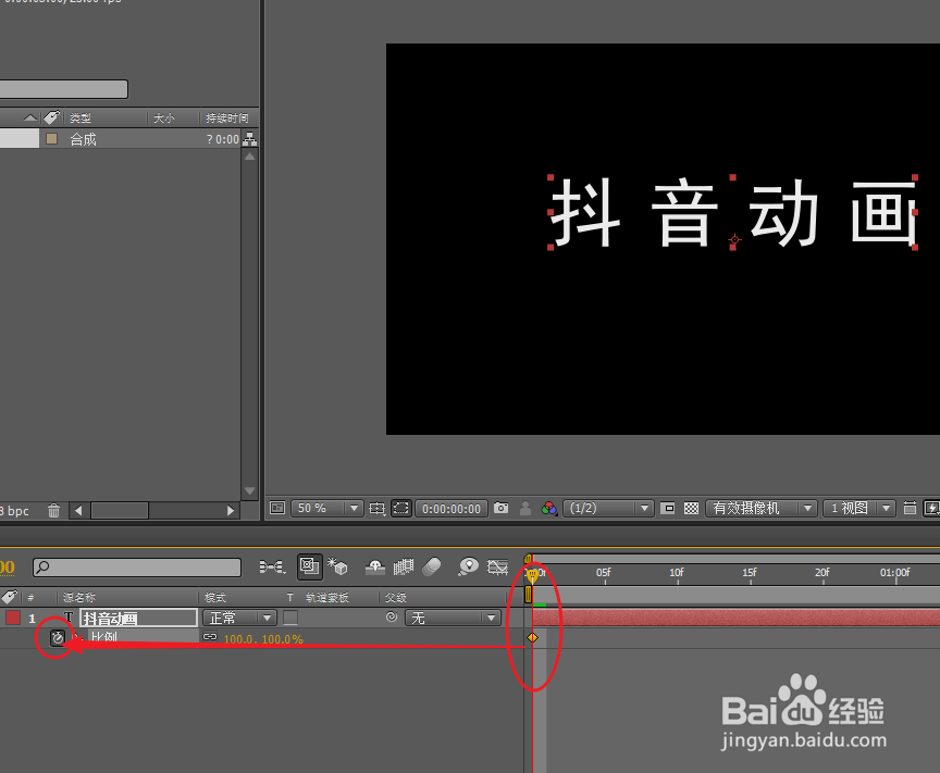 2/3按下键盘上的S键,展开“比例”属性,为“比例”添加一个关键帧。