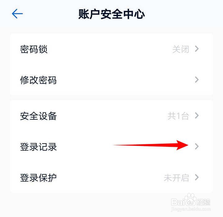 5/6在账户安全中心页面,都是基本的安全设置项,点选登录记录;