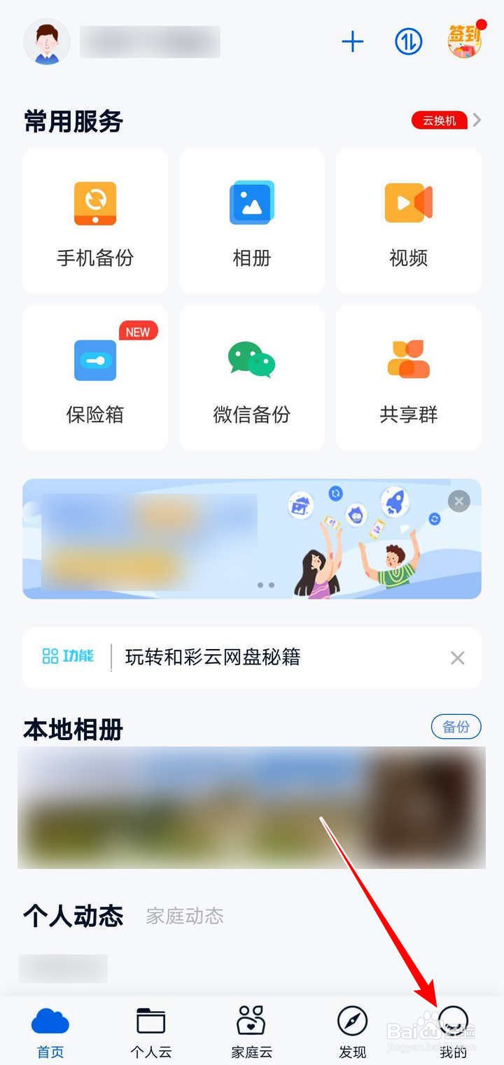 3/6在我的页面,包含空间使用情况、服务和菜单,点选设置;