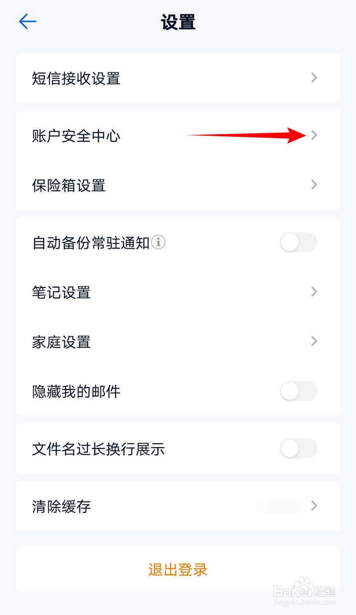4/6在设置列表,点选账户安全中心右侧的箭头;