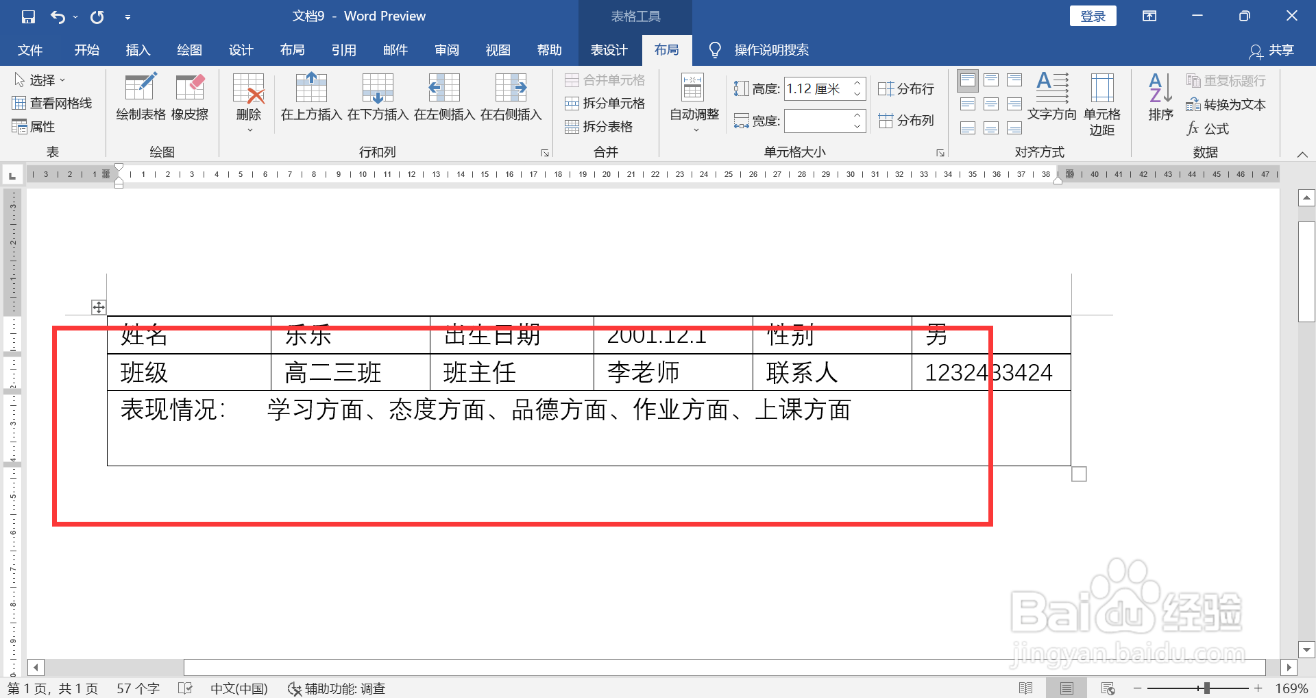 在WORD文档中插入一张表格,填写高中生的个人信息,从学习、作业、上课等方面填写高中阶段的表现。品牌型号:机械革命S3 Pro系统版本:Windows10软件版本:Word2019方法/步骤1/3分步阅读
