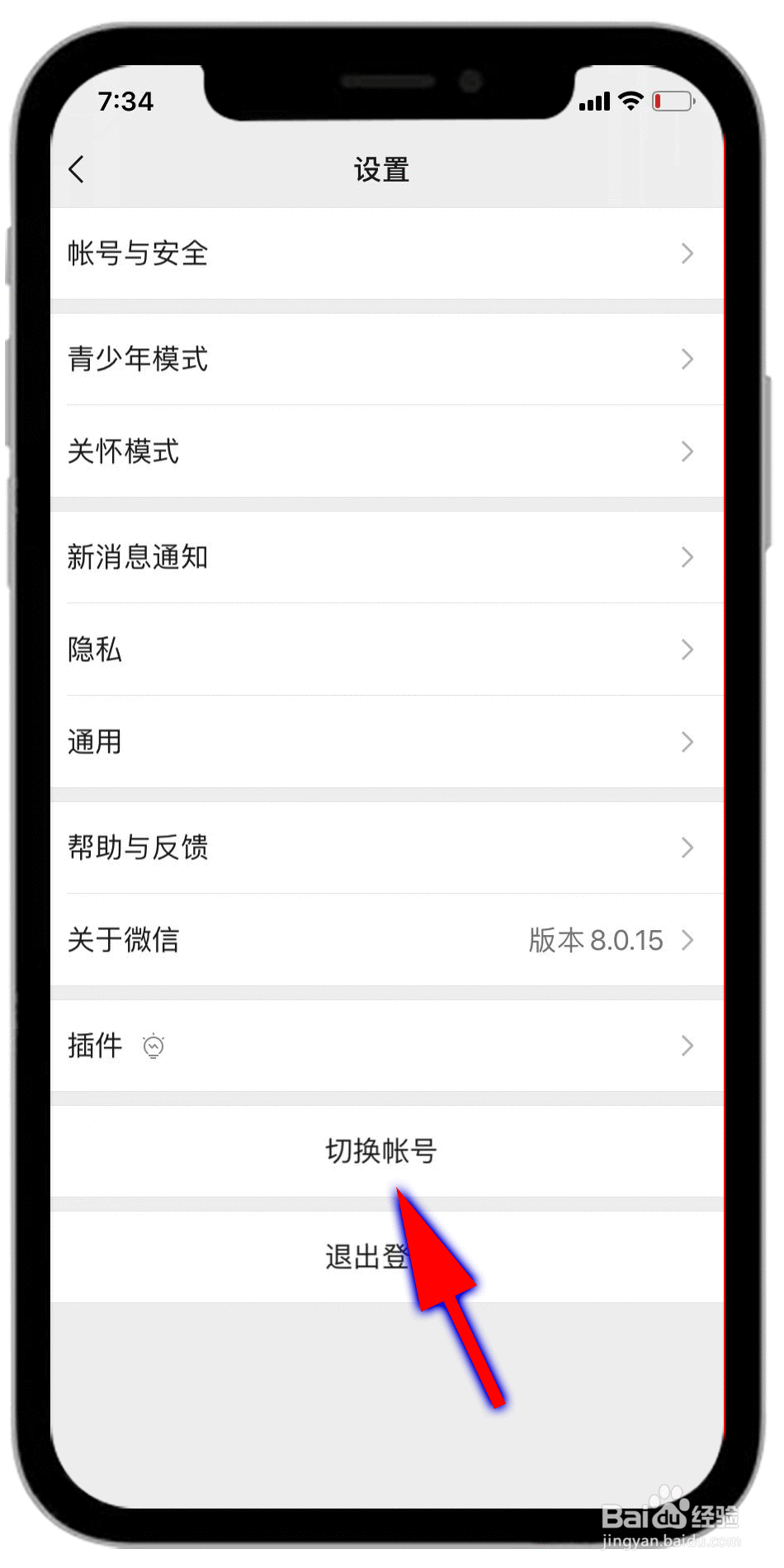 3/6设置界面,点击“切换账号”。