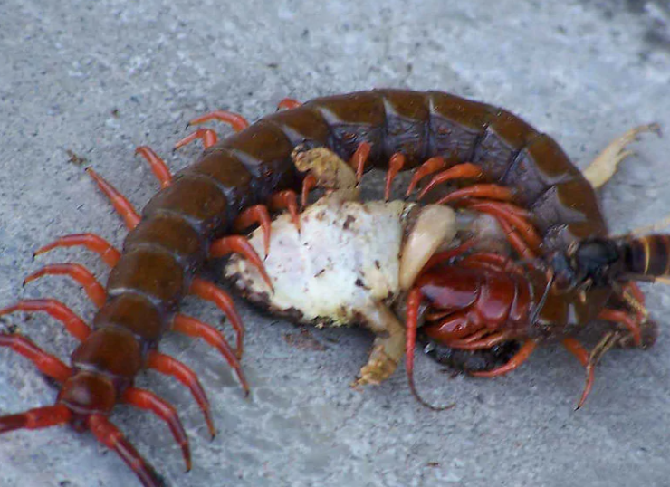 药用蜈蚣是大型唇足类多足动物,只有21对步足和1对颚足;“钱串子”是蜈蚣近亲,学名蚰蜒,只有15对步足和1对颚足;“石蜈蚣”也只有15对步足。还有些蜈蚣的步足又多又短,有35对、45对,最多的达到750对。