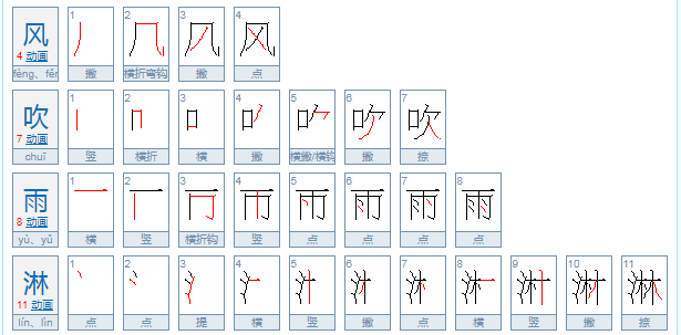 风吹雨淋笔画