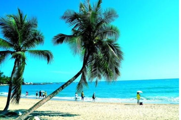 海风吹来,绿叶摇摆,仿佛在向人们招手。每当清晨或傍晚,坐在沙滩的礁石上,面对着大海,听着海浪拍打的声音,看着海上红日东升或落日西沉的奇景,你一定想高唱一曲,赞美这秀丽的海南风光。