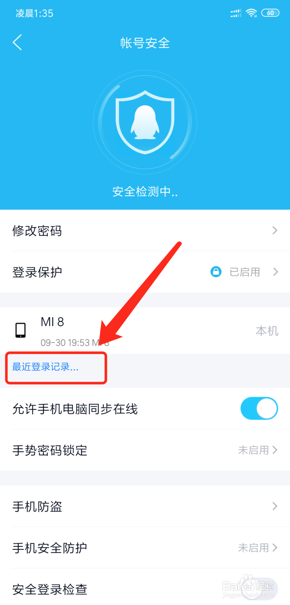 5、点击【最近登录记录】功能,即可查看手机qq登录历史记录。